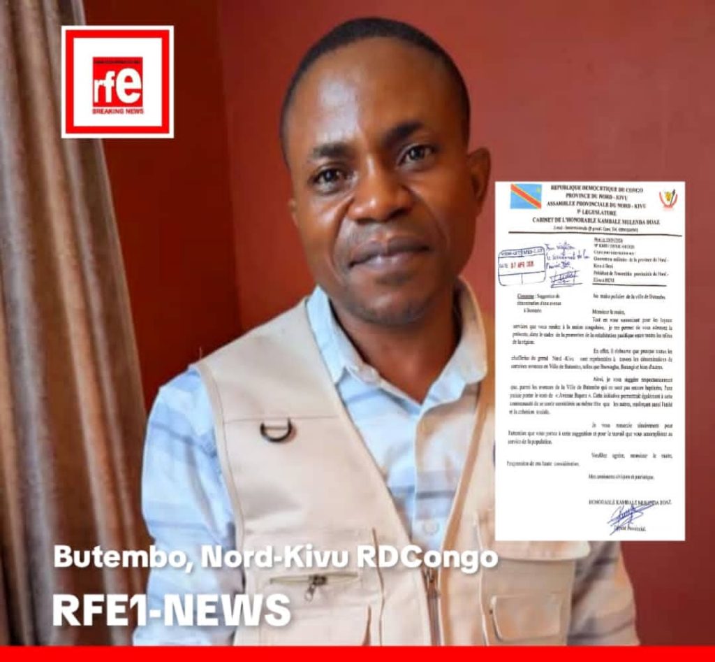 À travers une correspondance officielle datée du 6 avril 2026 depuis Beni, le député provincial Kambale Mulenda Boaz a saisi le maire policier de la ville de Butembo, le Commissaire Supérieur Principal MOWA BAEKI TELLY ROGER pour lui soumettre une suggestion liée à la dénomination de certaines avenues au nom des << Bapere >> . Cette initiative s’inscrit dans une démarche visant à consolider la cohabitation pacifique entre les différentes communautés du Nord-Kivu.