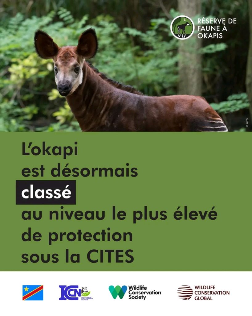 Par ailleurs, l’Institut Congolais pour la Conservation de la Nature en République Démocratique du Congo ( ICCN – RDC ) et Wildlife Conservation Society ( WCS ) saluent la décision de la CITES d’interdire le commerce international des Okapis, une espèce menacée dans les aires protégées notamment à la RFO.